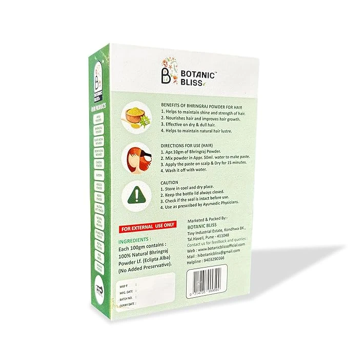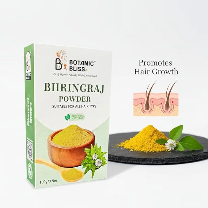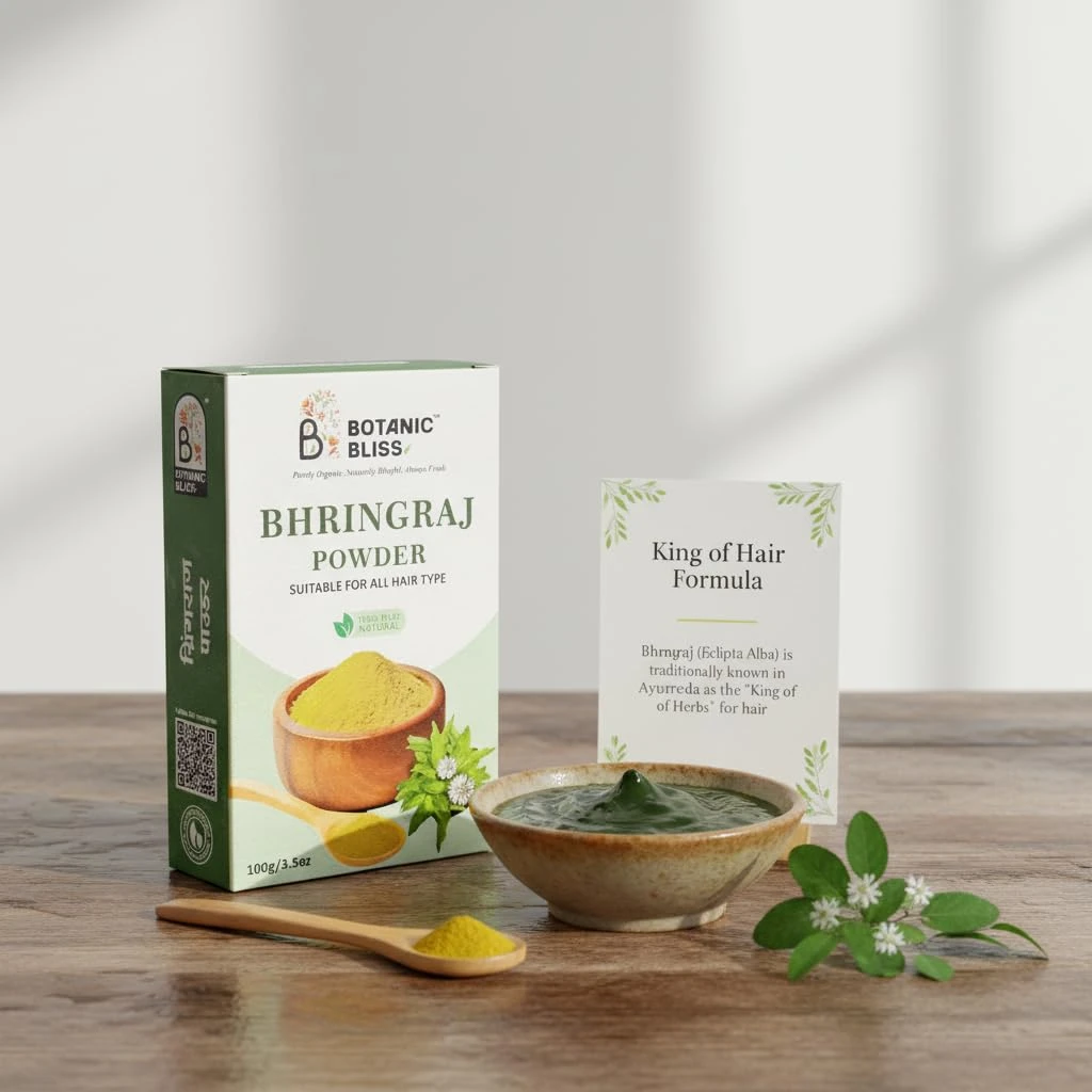 Bhringraj, known as the “King of Herbs for Hair” in Ayurveda, is a powerful natural remedy for healthy, strong, and beautiful hair. Our pure Bhringraj Powder is made from carefully dried and finely ground Bhringraj leaves to retain maximum nutrients and herbal potency.