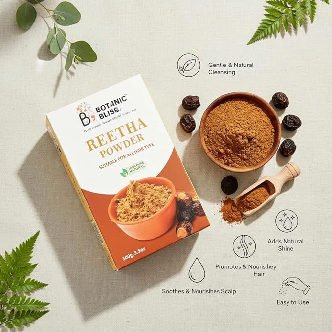 Reetha powder is a natural cleanser that gently removes dirt and excess oil from the scalp. It helps control dandruff, promotes hair growth, and adds natural shine. Ideal for maintaining clean, soft, and healthy hair without stripping natural oils.