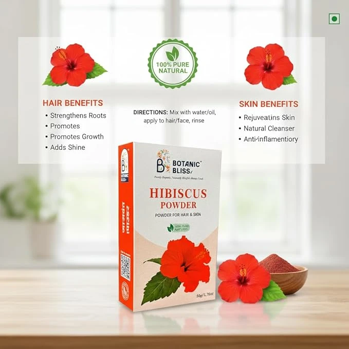 Regular use helps reduce hair fall, stimulate hair growth, and prevent premature greying. It acts as a natural conditioner, leaving hair soft, shiny, and manageable while maintaining scalp health. Hibiscus Powder is also effective in controlling dandruff and soothing an irritated scalp.