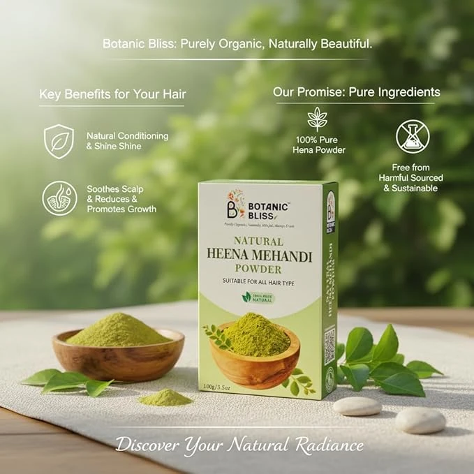 Free from artificial colors, ammonia, PPD, parabens, and preservatives, natural heena mehandi is a safe and eco-friendly alternative to synthetic hair colors. It can be used alone or mixed with herbal ingredients like amla, bhringraj, or indigo for enhanced color and hair benefits.