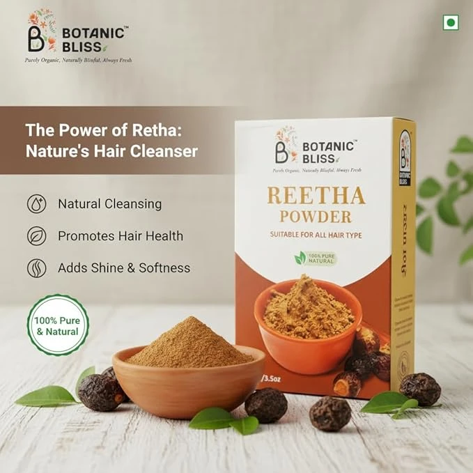 Free from sulfates, parabens, silicones, artificial fragrance, and preservatives, reetha powder is a safe, eco-friendly alternative to synthetic shampoos. It can be used alone or blended with shikakai and amla for enhanced cleansing and nourishment.