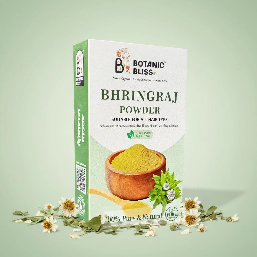 Bhringraj, known as the “King of Herbs for Hair” in Ayurveda, is a powerful natural remedy for healthy, strong, and beautiful hair. Our pure Bhringraj Powder is made from carefully dried and finely ground Bhringraj leaves to retain maximum nutrients and herbal potency.