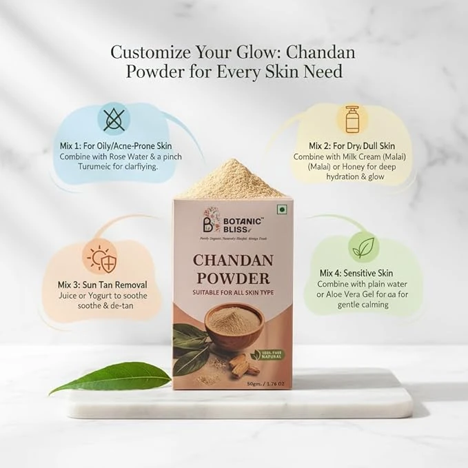 Mix Chandan Powder with rose water, milk, or honey to make a smooth paste. Apply evenly on face and neck, leave for 10–15 minutes, then rinse with water.