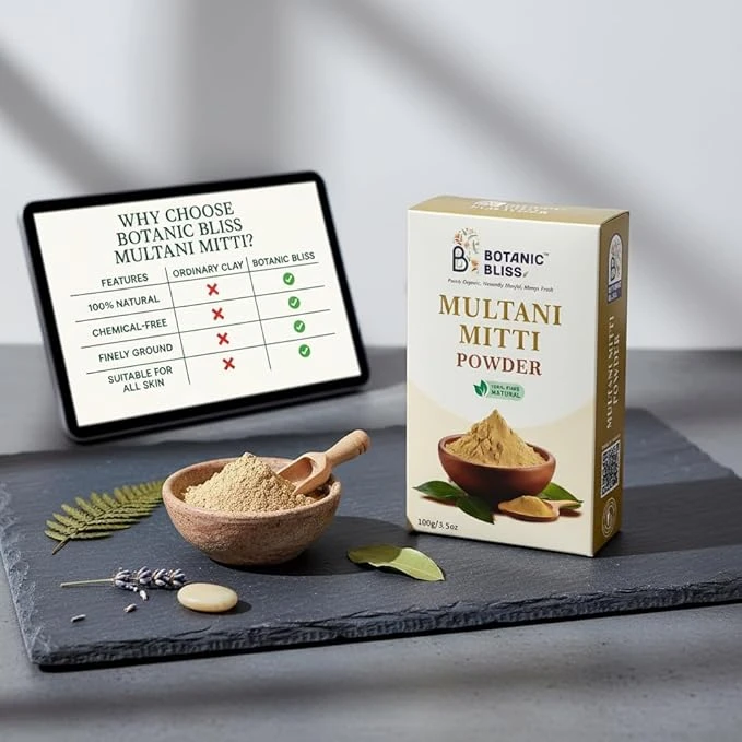 Free from artificial colors, preservatives, and additives, Multani Mitti powder is an eco-friendly and safe skincare solution for face packs, masks, and body applications.
