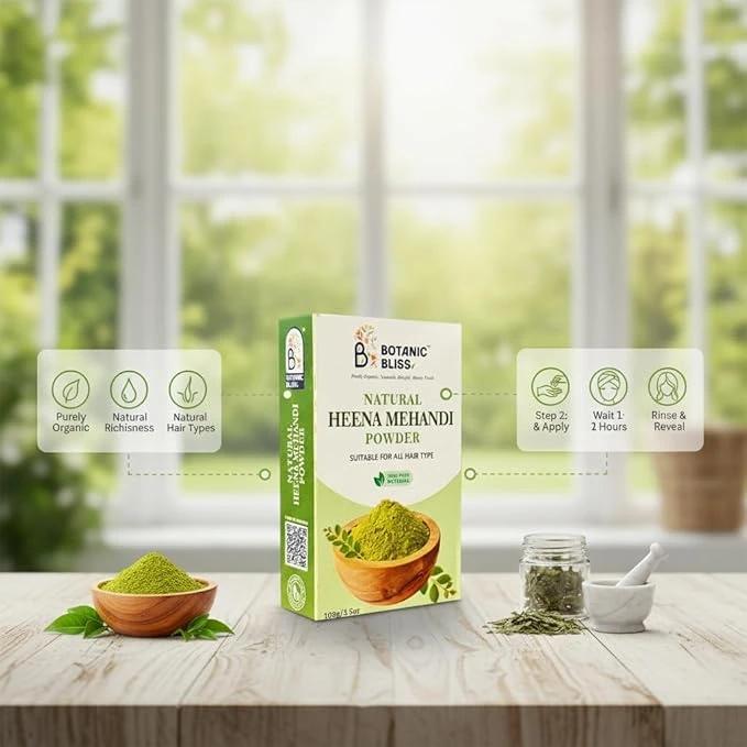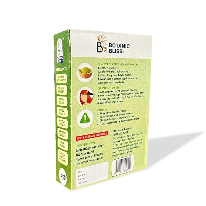 Free from artificial colors, ammonia, PPD, parabens, and preservatives, natural heena mehandi is a safe and eco-friendly alternative to synthetic hair colors. It can be used alone or mixed with herbal ingredients like amla, bhringraj, or indigo for enhanced color and hair benefits.